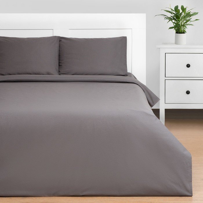 2-спальный, бязь (хлопок), пододеяльник 175x215 см, простыня 200x220 см, наволочка 50x70 см, серый