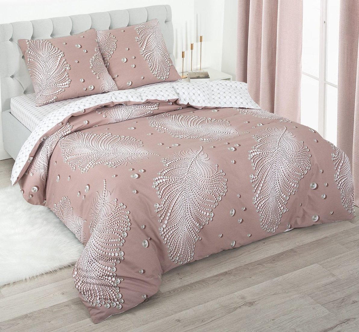 2-спальный с евро простыней, поплин, пододеяльник 175x215 см, простыня 215x240 см, наволочка 70x70 см, розовый/белый