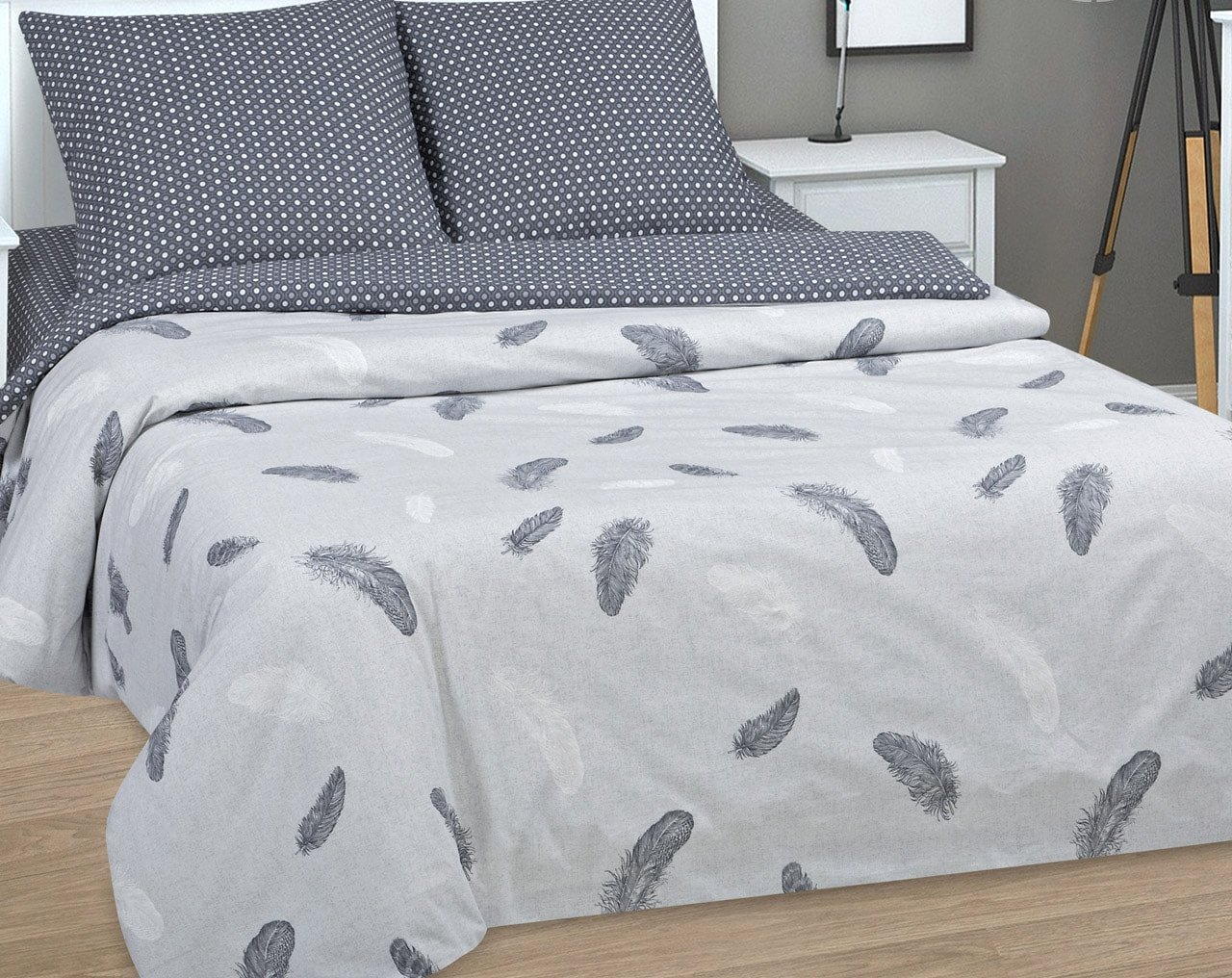 2-спальный с евро простыней, поплин, пододеяльник 175x215 см, простыня 215x240 см, наволочка 70x70 см, белый/серый