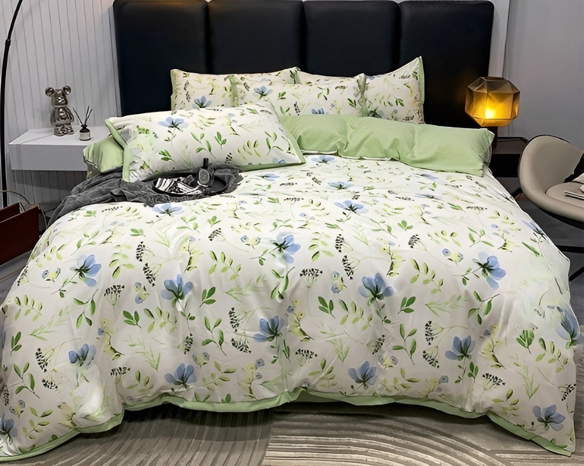 2-спальный с евро простыней, поплин, пододеяльник 220x240 см, простыня 220x240 см, наволочка 70x70 см, бежевый/зеленый