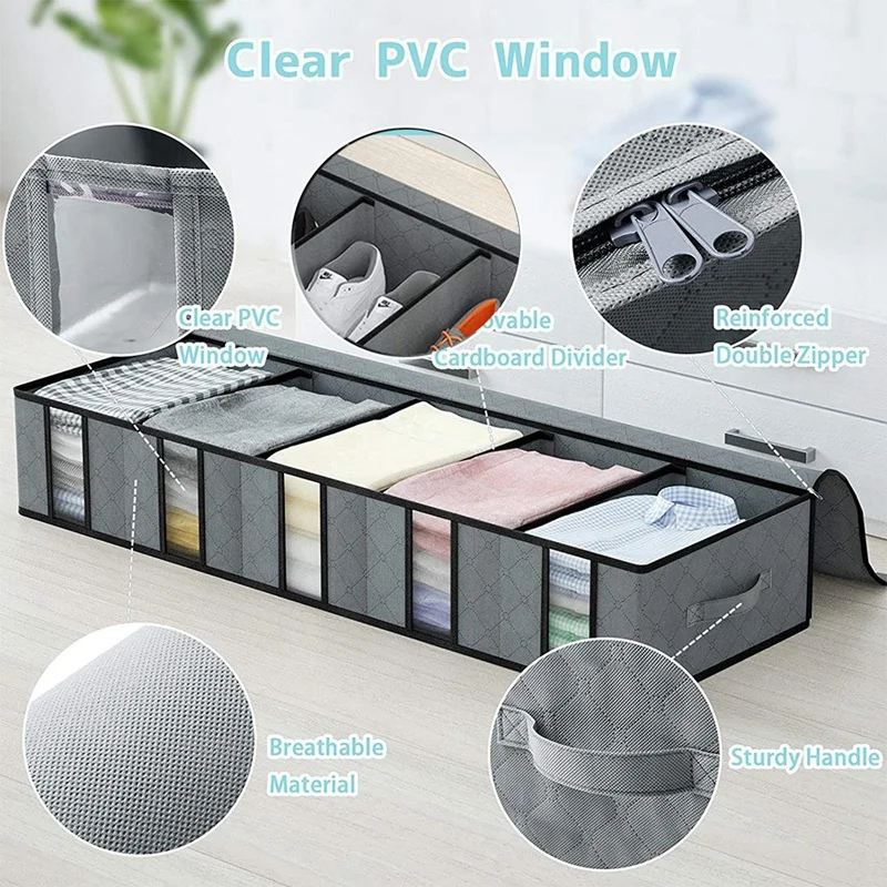 2 сумки для хранения под кровать, сумка для хранения одежды со съемными Разделителями и прозрачным окошком, для одежды/одеяла