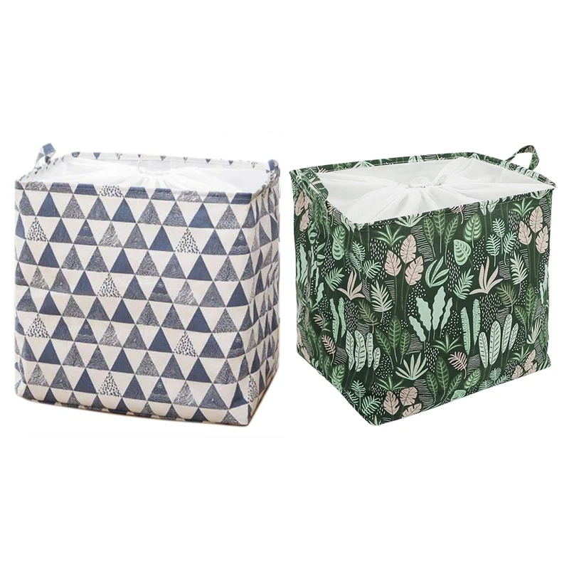 2 х л прямоугольные корзины для белья с ручкой и шнурком, складная хлопковая льняная ткань для хранения (синий и зеленый)