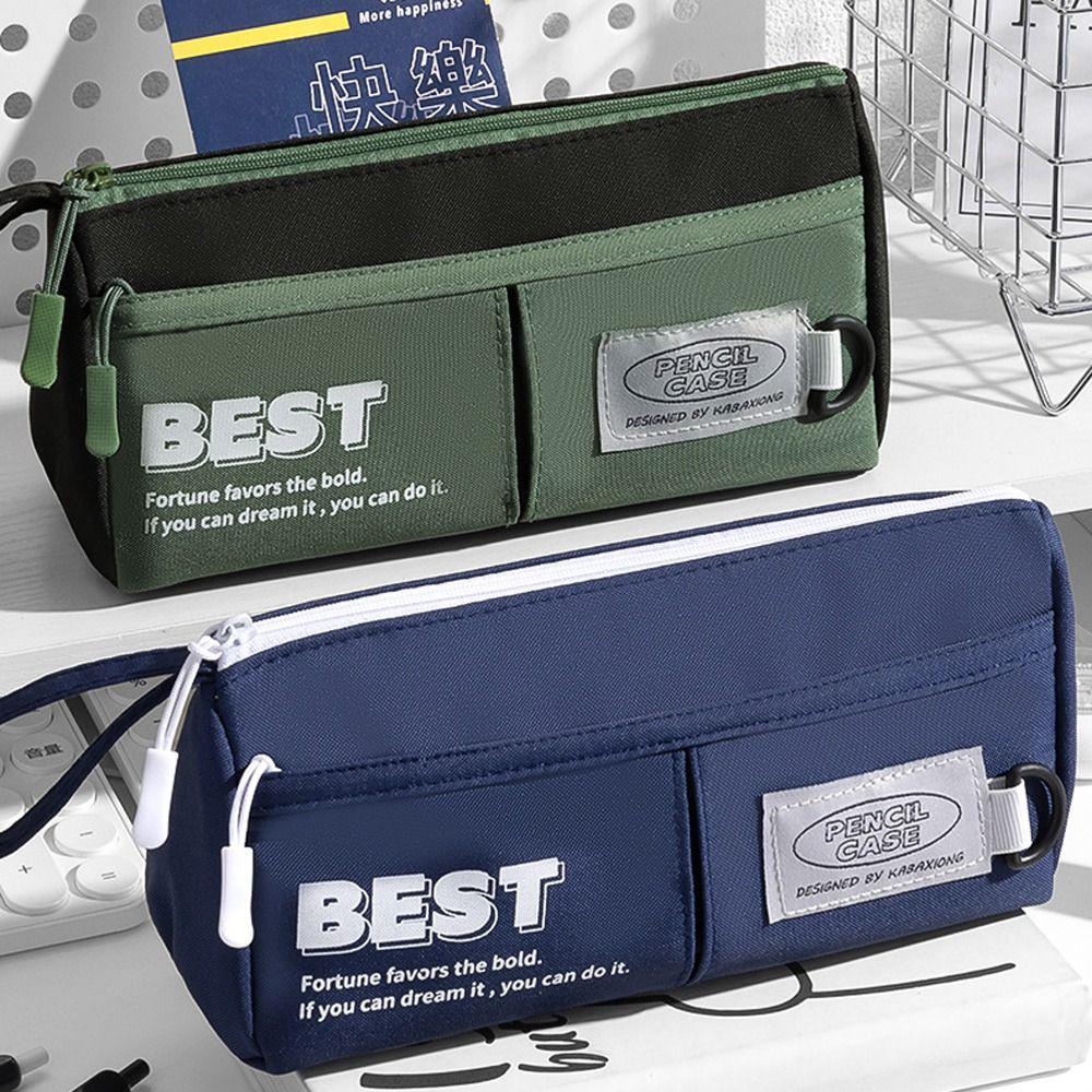 2 шари пенал портативний олівець чохол мода канцелярське приладдя Організатор студент темно-синього кольору