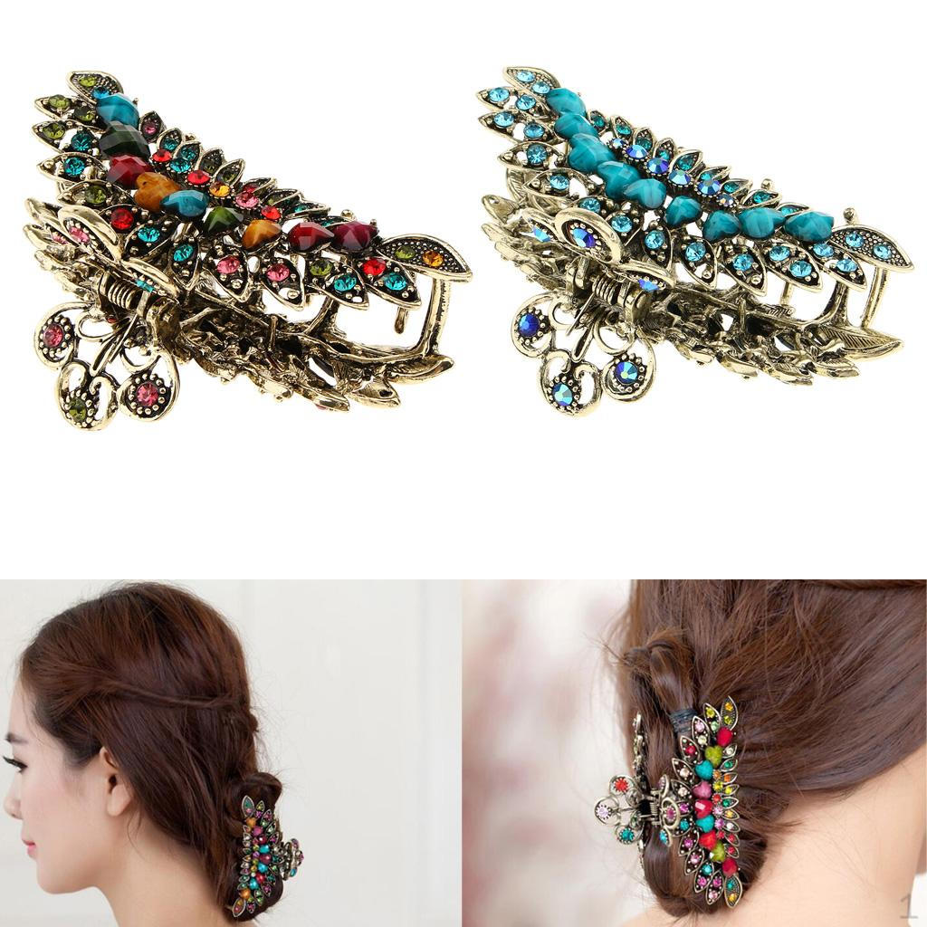 2 шт. Женская винтажная большая металлическая заколка-краб для волос с кристальным цветком