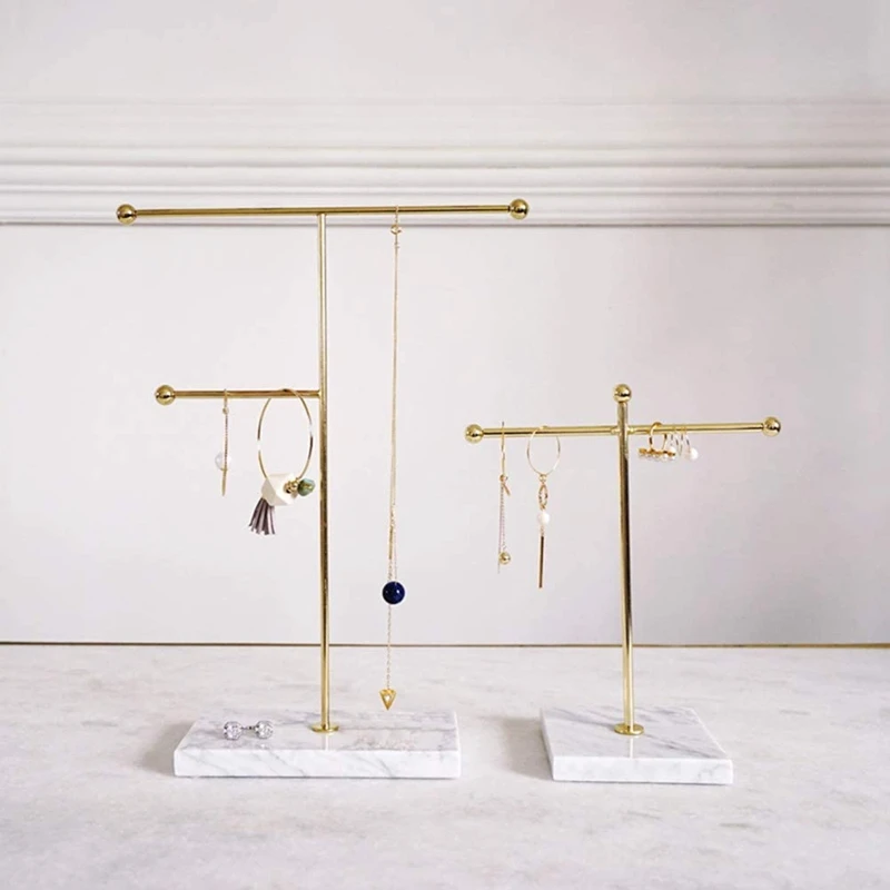 2 шт. Золотая полка для хранения с мраморной основой, модные современные ювелирные изделия, кольцо, ожерелье, серьги, Металлическая Витрина, B...