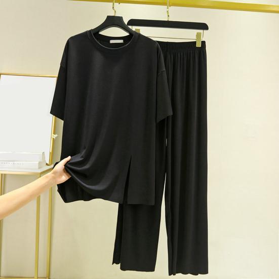Напоминание: 1. Из-за света есть небольшая разница между фактическим цветом и цветом изображения, пожалуйста, возьмите полученный объект в качестве стандарта. 2. Из-за различных методов измерения между измерением и фактическим размером составляет 1-2 см. Имя элемента: Набор пижам Материал: Модальный Стиль: Повседневная Пол: женщины Тип размера: Плюс Размер Fit Тип: рыхлый Тип шеи: С круглым вырезом Длина Рукава: Короткий рукав Длина блузки: Обычный Талия Тип: Средней высоты Длина штанов: Длинные брюки Сезон: Летом Характеристики: Свободная, боковой шпагат, прямая широкая нога Детали размера: Размер: L, бюст: 102 см, длина верха: 65см, Талия: 64 см, бедра: 100 см, длина брюк: 94см Размер: XL, бюст: 104 см, длина верха: 66 см, талия: 65 см, бедра: 102см, Длина брюк: 95см Размер: 2XL, бюст: 112 см, длина верха: 70см, Талия: 66 см, бедра: 104 см, длина брюк: 96см Характеристики: Надев этот комплект свободных и прямых брюк-блузок с широкими штанинами, вы будете чувствовать себя комфортно в течение всего дня. А однотонный цвет и дизайн с боковым разрезом добавляют ощущение сладости пижамному комплекту. Приняв свободный дизайн, женский повседневный комплект домашней одежды может скрыть вашу толстую часть тела и сделать вас удобным в повседневной жизни. Изготовленный из высококачественного модала, женский пижамный комплект мягкий, дышащий и удобный в носке. Можно выбрать несколько размеров: L, XL, 2XL. Этот пижамный комплект подходит для повседневной носки, дома, медового месяца, офиса, вечеринки, отпуска, отдыха и так далее. В коплект входит: 1 х топ 1 штаны