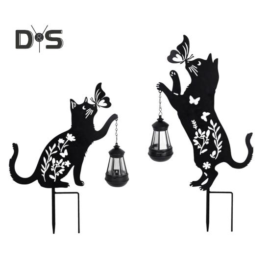 2 шт. Металлические солнечные фонари для кошек, уличные черные коты и бабочки, знак для двора, водонепроницаемый силуэт кота, фонарь для лужайки для сада и патио чёрный
