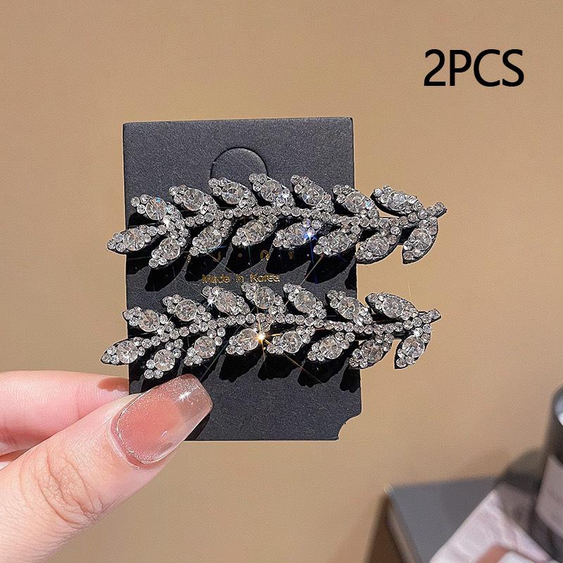 2 шт. Модная заколка-уточка для волос с блестящими стразами в виде пшеничного колоса и листа, Изысканная боковая заколка с прямой клипсой, Аксессуары для волос