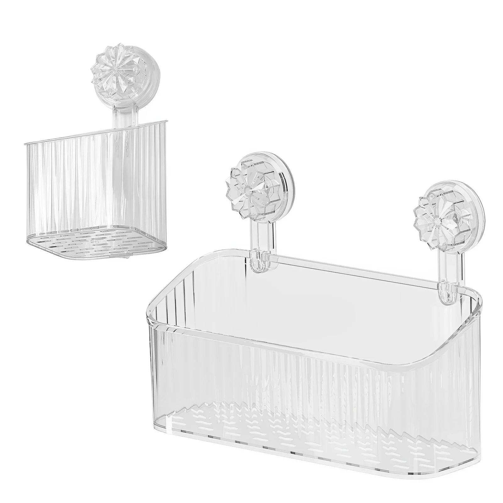 2 шт. Органайзер для ванной комнаты с присосками, настенный, без сверления, полка для душа и макияжа, прозрачная, самодренирующаяся, кухонная, для ванной, стеллаж для хранения чистый