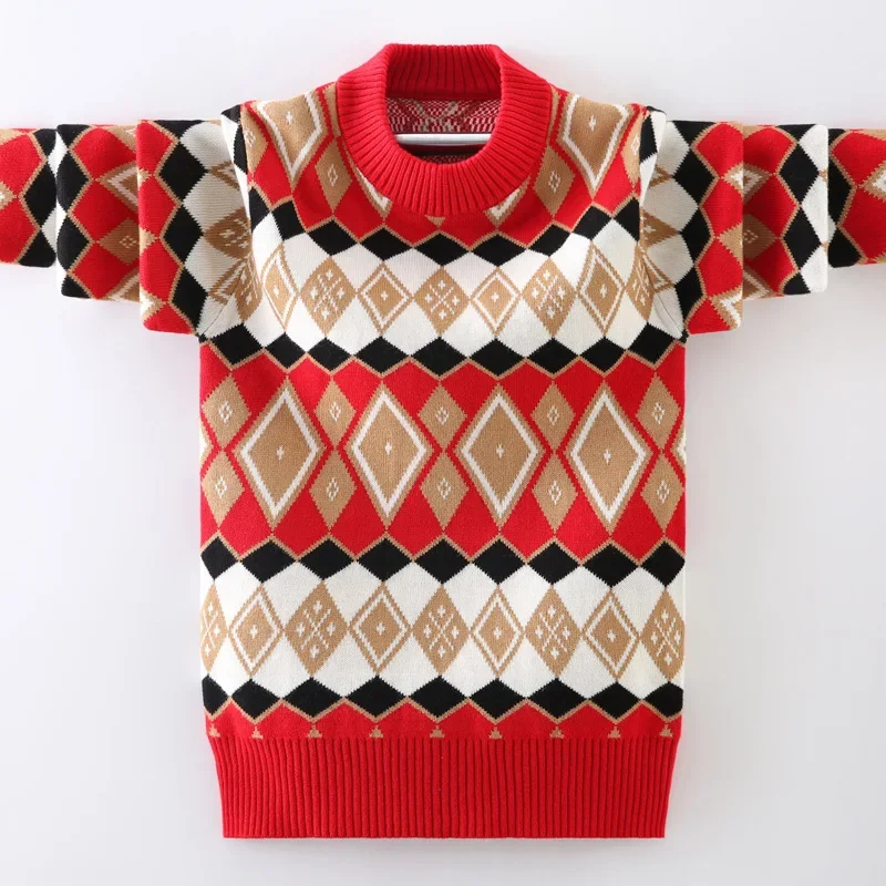 Детский Теплый свитер на осень и зиму, трикотажные пуловеры для мальчиков, одежда для подростков, модные школьные хлопковые топы с узором