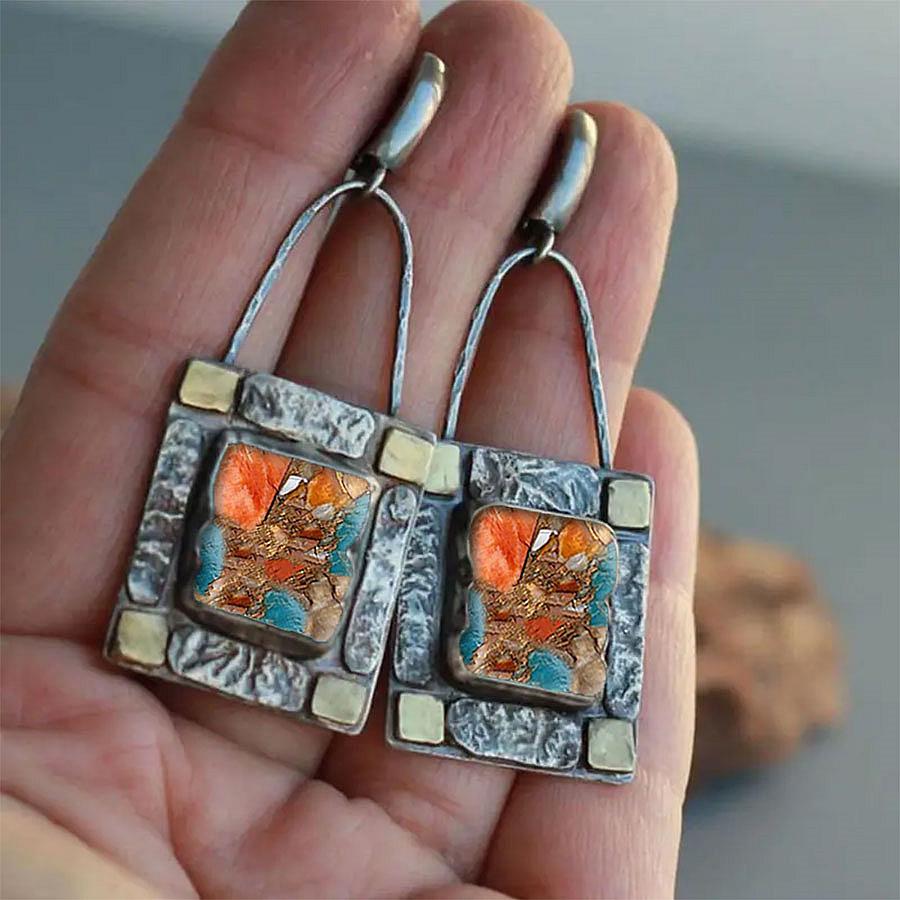 2 шт. Ретро серьги с имитацией бирюзы с квадратным кулоном, богемные украшения для девочек, подарок на день рождения и юбилей