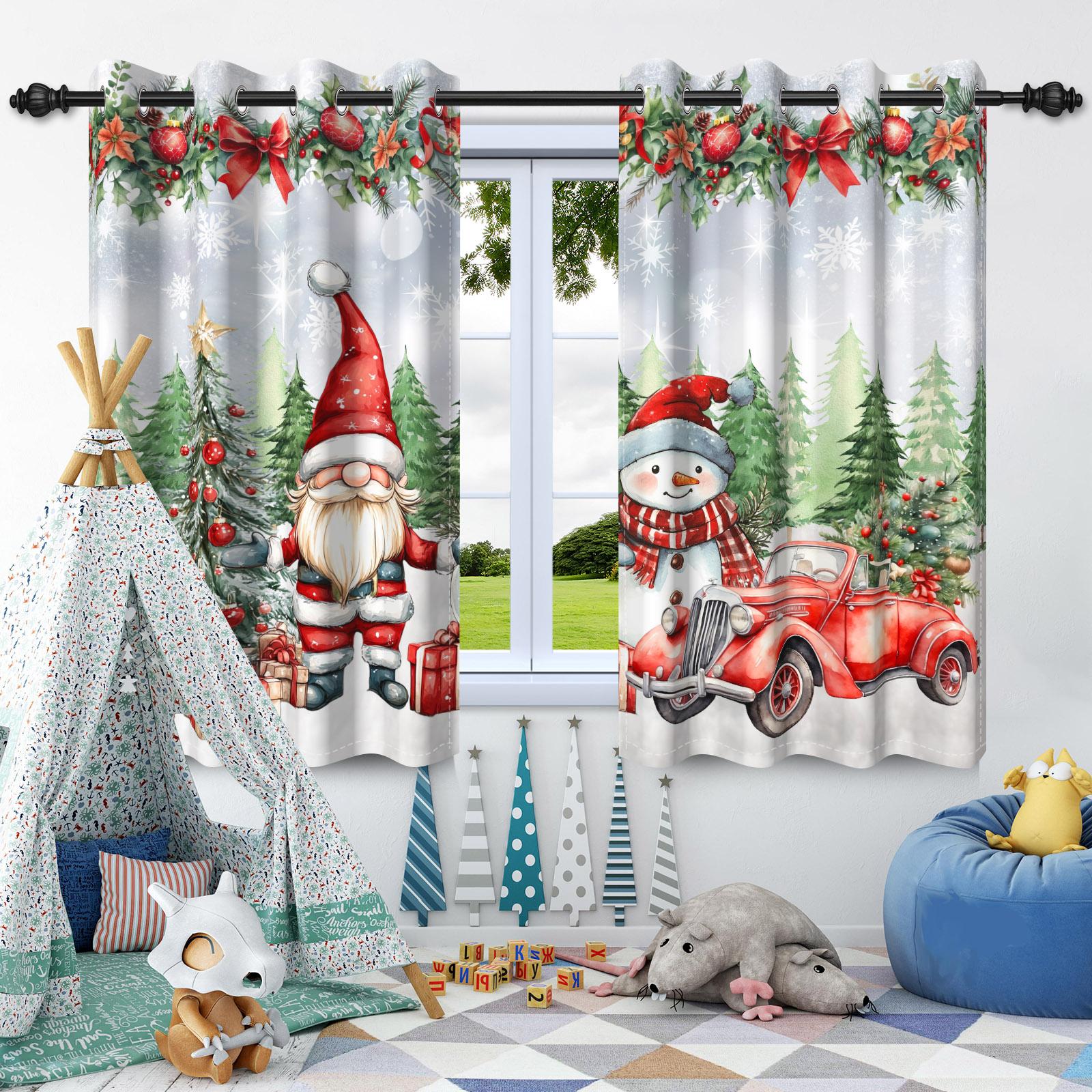 2 шт. Рождественские светонепроницаемые шторы Рождественская елка Дед Мороз Снеговик Дом Спальня Гостиная Затемняющие Шумопоглощающие Оконные шторы 90x160cm 2pcs