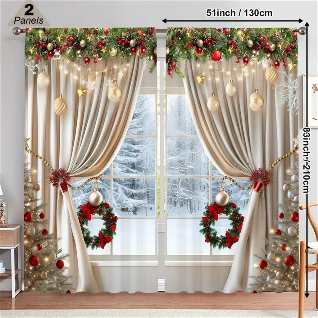 2 шт. Роскошные рождественские украшения Шторы Праздничный цифровой принт Праздничный декор Гостиная Спальня Кухня Дверь Детская комната W50 X H130(CM)X2&Grommet Top
