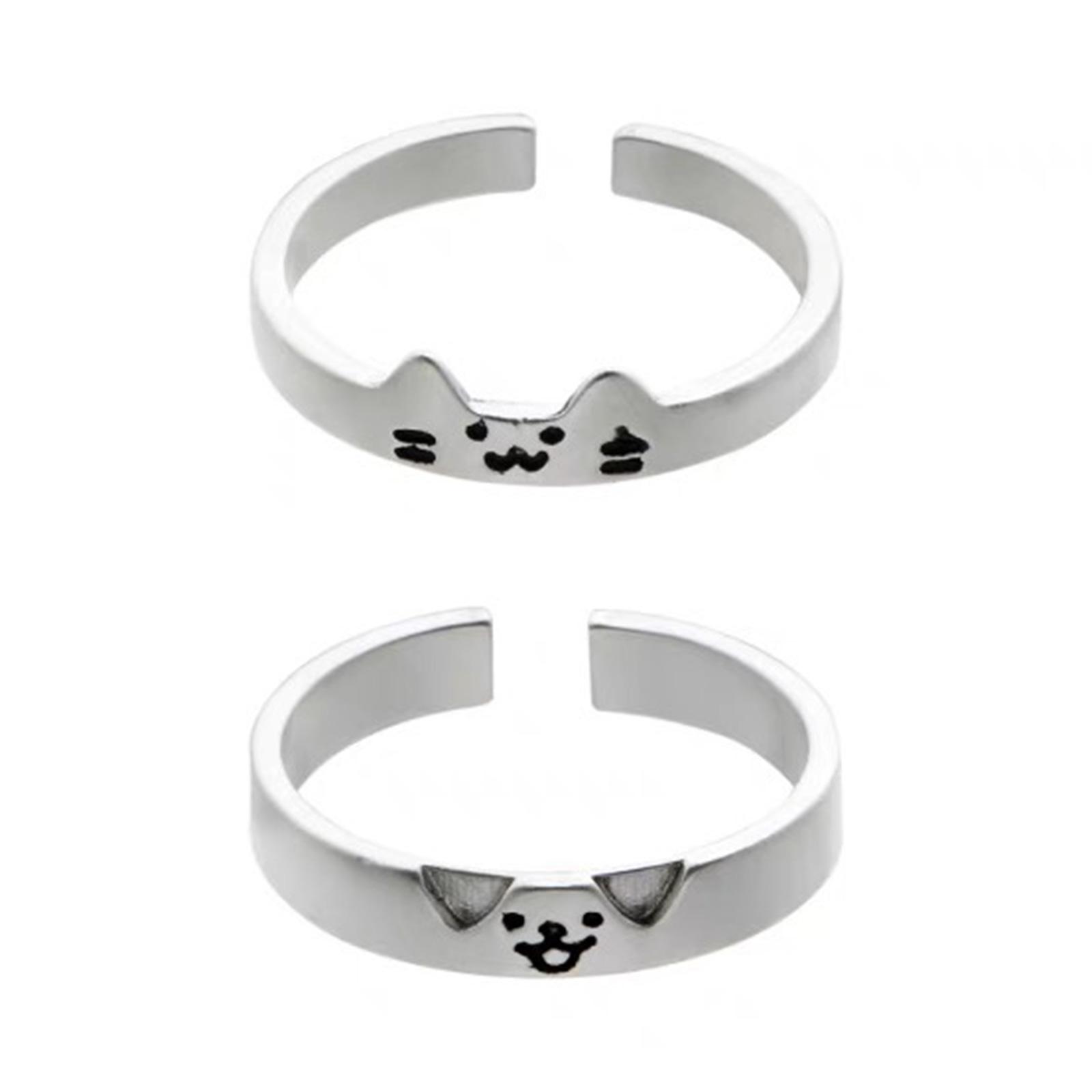 2 шт. Сплав Открытое кольцо с мультяшными кошками и собаками Регулируемый размер Кольцо дружбы Уникальный стиль Свадебные помолвочные украшения