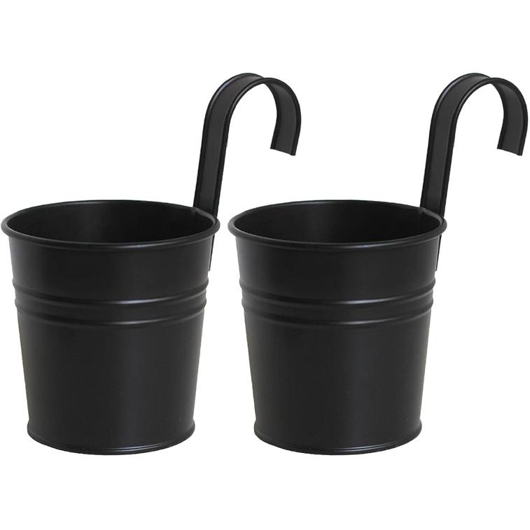 2 шт. Съемный крючок Черное олово Ведро для цветов, Металлические железные подвесные цветочные горшки для растений, Ретро Черный(6,5 дюймов, Длина с крючком) для окон, стен, заборов и
