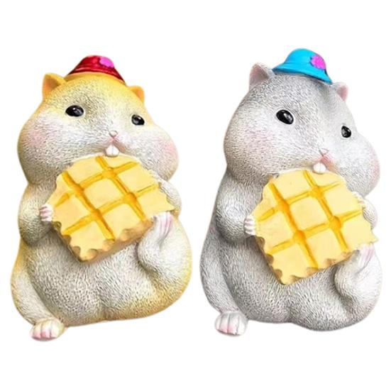 2 шт. Фигурка хомяка, резиновая статуэтка хомяка, поедающего сыр, мультяшное животное, украшение для домашнего офиса, стола, приборной панели автомобиля 2pcs