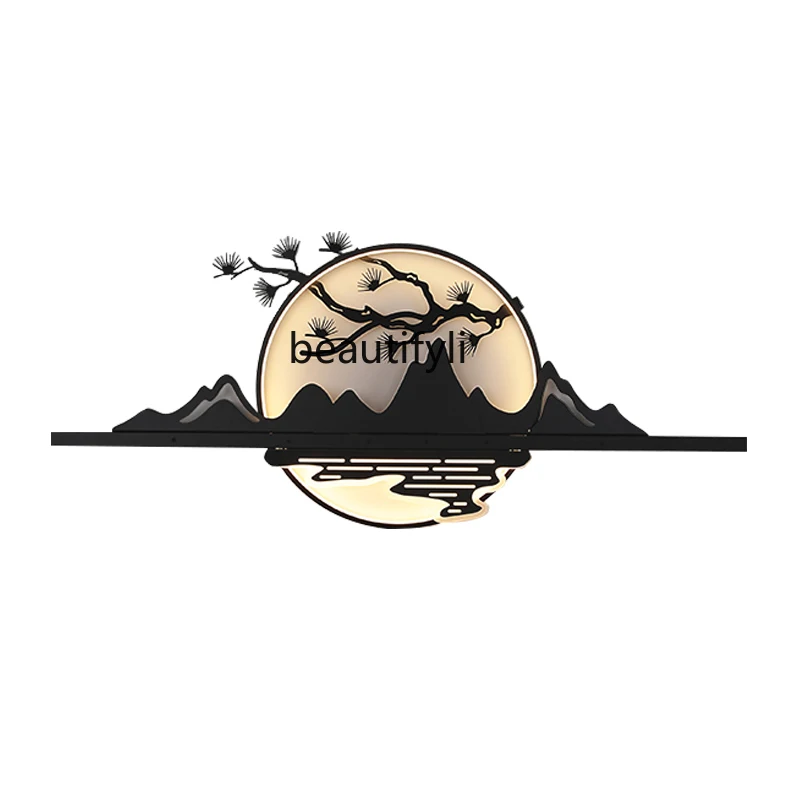 New Chinese Style Living Room Background Wall Lamp Long Mural Hanging Lamp Zen Tea Room Wall Hanging Lamp