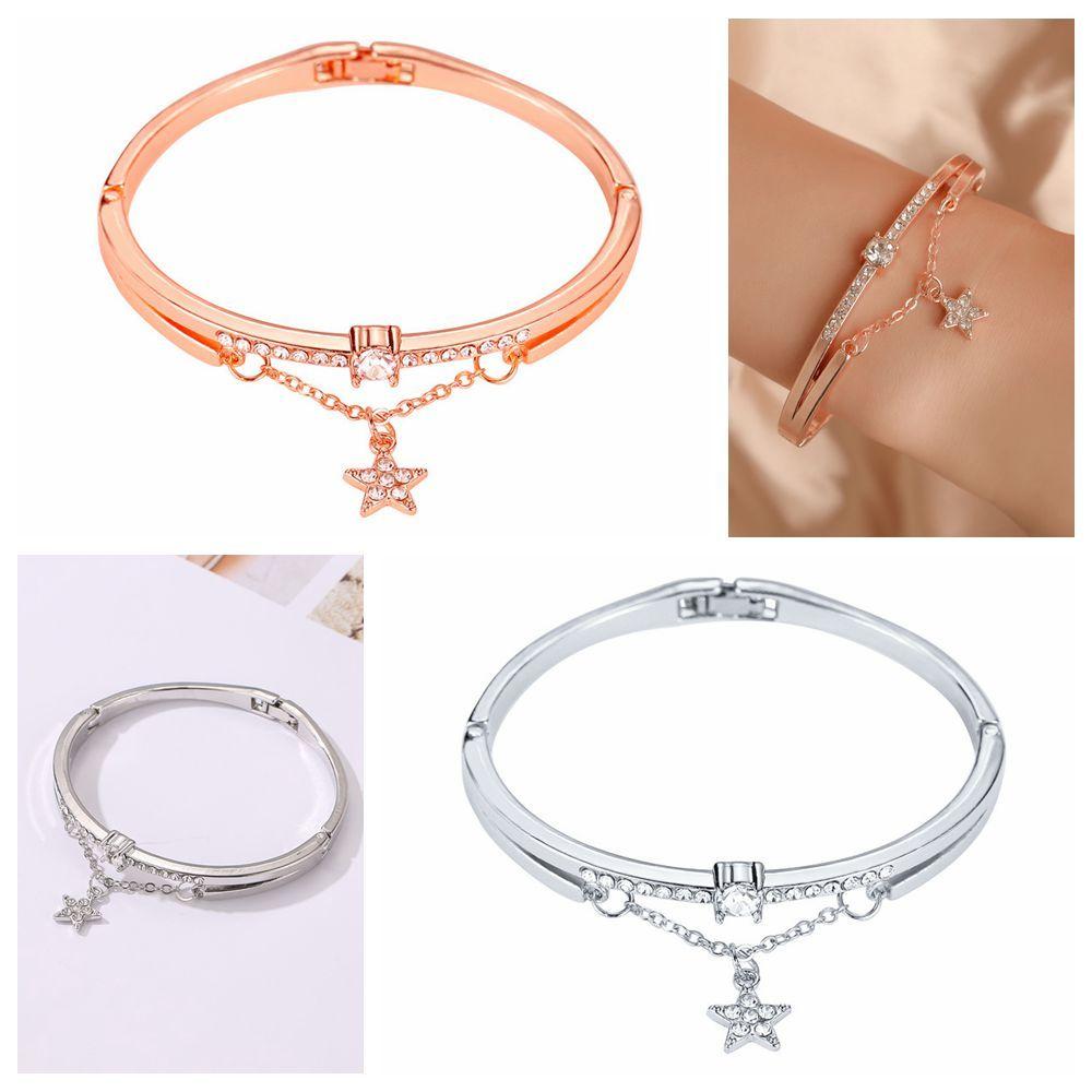 2 шт. Шарм Навсегда Любовь Розовое Золото Ювелирные Изделия Манжеты из нержавеющей стали Браслеты Подвеска Капля Звезда Браслет