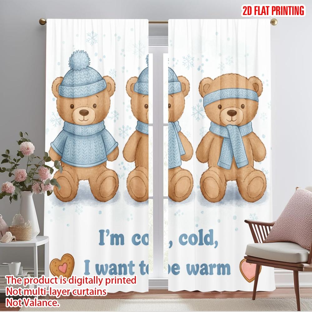 2 шт. Шторы с 2D плоской печатью Зимние плюшевые мишки Уютные теплые полиэстеровые Без электричества Праздничные Идеально подходят для декора комнаты 52.50×116.00 CM 2pcs