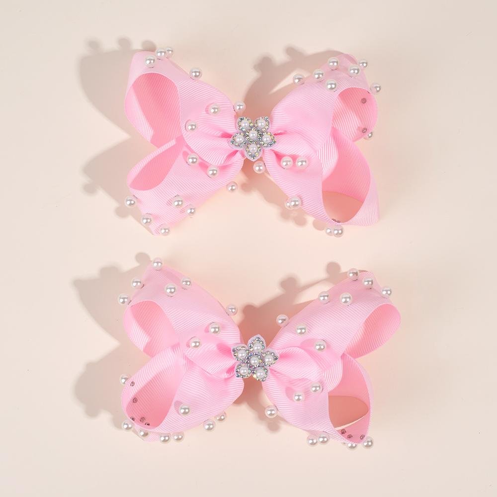 2 шт. Элегантная заколка для волос с жемчужным бантом, розовая, полностью украшенная жемчугом, шпилька для волос, милая, ручной работы, заколка-автомат для девочки, детские аксессуары
