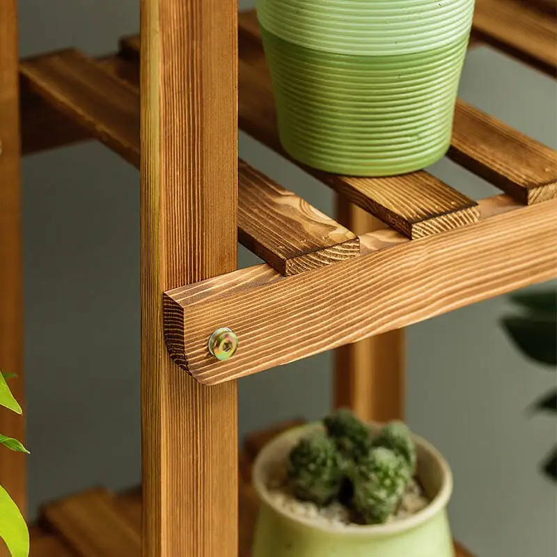 Natural Solid Wood Plants Stand Flower Pot Display Rack Creative Plant Storage Shelves Wooden Organizer for Terrace/ Patio