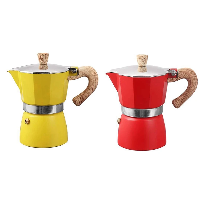2 шт., алюминиевая кофемашина для итальянского мокко, эспрессо, фильтр, плита, 3 чашки, желтый и красный