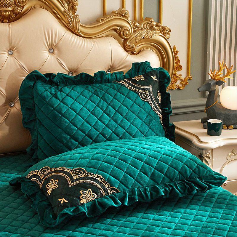 2 шт. бархатные стеганые кружевные наволочки для кровати домашний декор прямоугольная наволочка зимняя теплая мягкая 48x74 см 2PC 48*74CM