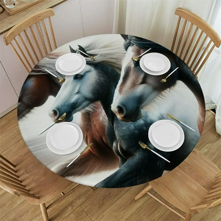 Palnkart Horses Running Round Tablecloth Stain Resistant Washable Indoor Outdoor Kitchen Dining Wedding Parties Tablecloths 100% Polyester Fiber 38-42