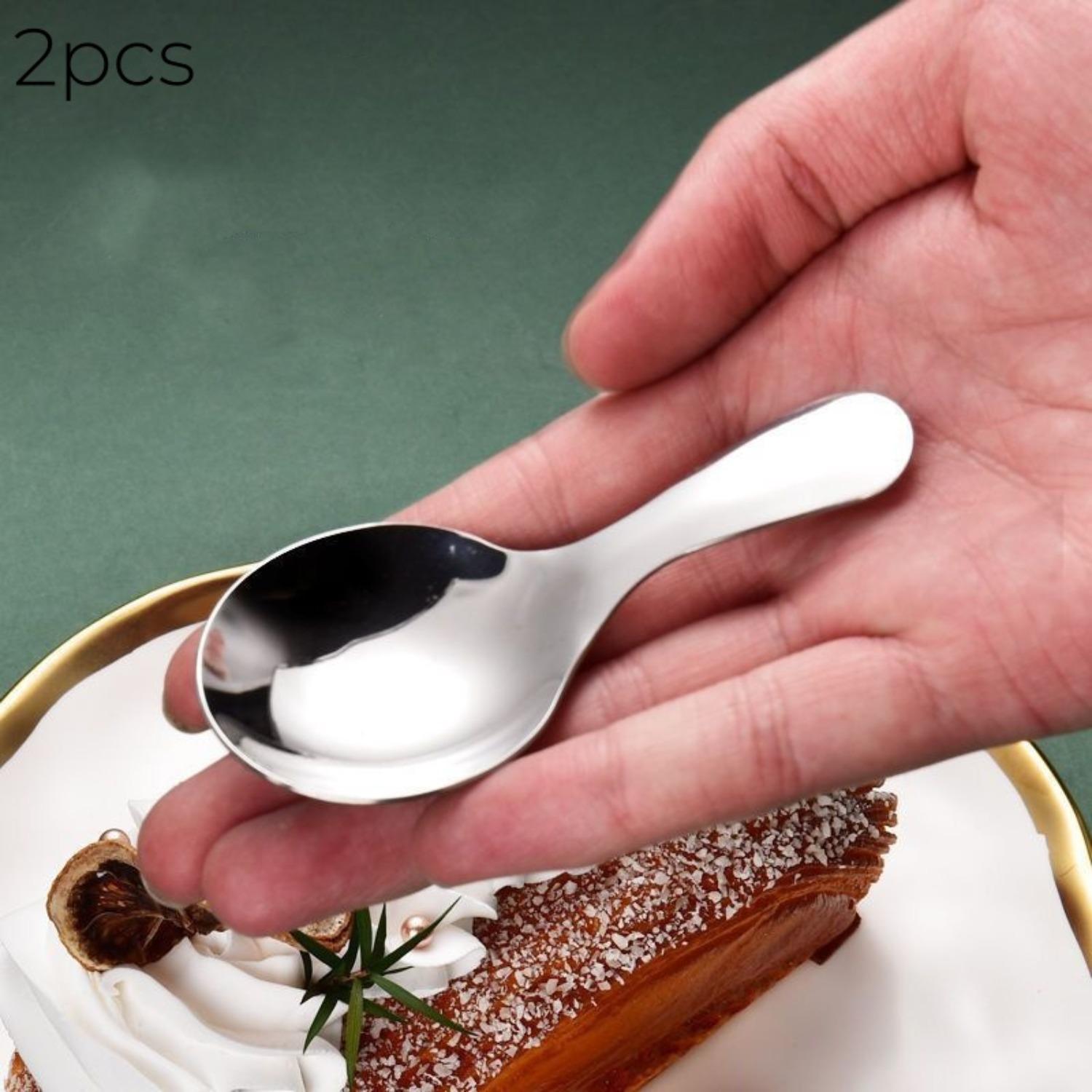 2 шт. в упаковке, многоразовые ложки для мороженого из нержавеющей стали с короткой ручкой для десертов, приправ, использования в ресторане, дома и кофейне 2pcs