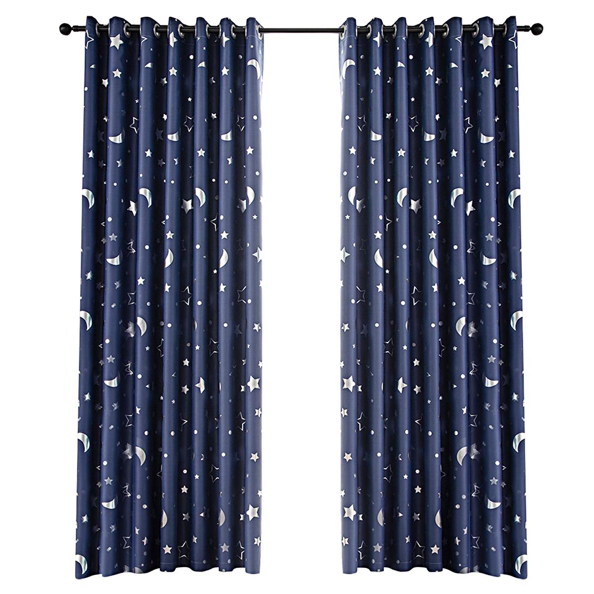 2 шт. занавеска с горячей серебряной звездой и луной, полное затемнение, теплоизоляционный светильник для спальни, гостиной темно-синий