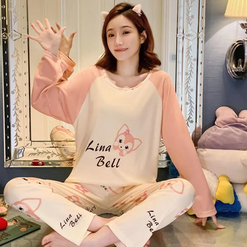 2 шт./комплект, большой размер, длинные рукава, длинные брюки, пижамы, женская домашняя одежда, студенческие пижамы, одежда для молодых девушек, женская ночная одежда XXL розовый