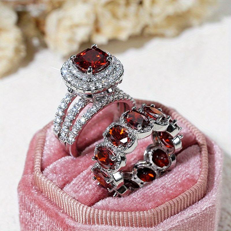 2 шт./комплект серебристого цвета с красным камнем, обручальное кольцо, ювелирные изделия на День святого Валентина 10