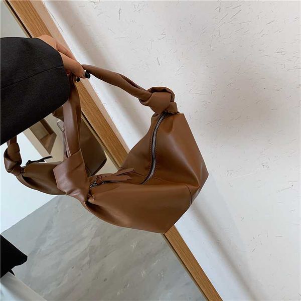 retro bags women 2020 new solid casual soft leather handbag trendy female handbag vintage shoulder underarm tie knot women bag
