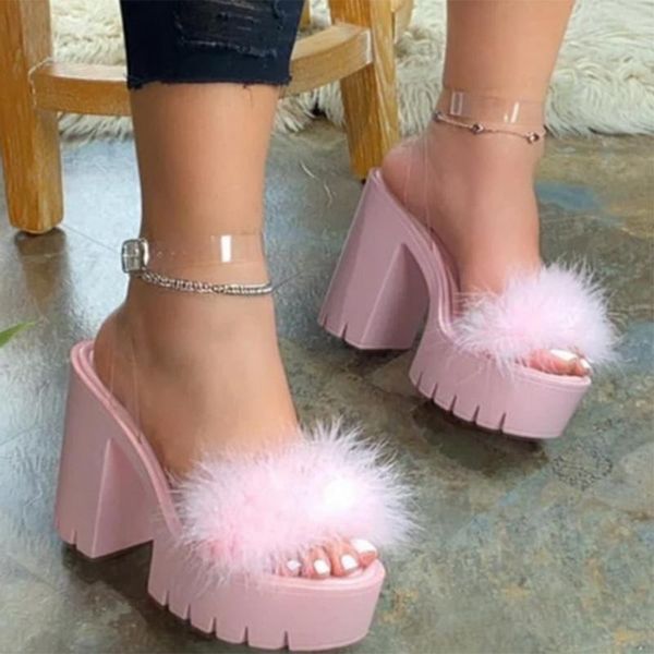 sandals women summer pumps thin high heels peep toe faux fur deco bride wedding shoes woman female mujer sapato feminino, Black