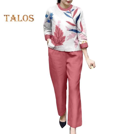 2 шт./компл. Женская футболка и брюки, комплект плюс размер с цветочным принтом, круглый вырез, топ с длинными рукавами, широкие брюки с эластичной резинкой на талии, свободные брюки, повседневная одежда, одежда для поездок на работу L розовый