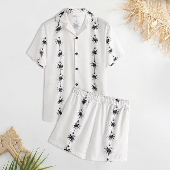 2 шт./компл., женские летние рубашки, шорты, костюм, однобортный с принтом с лацканами, свободные, мягкие, с короткими рукавами, с эластичной резинкой на талии, тонкая повседневная домашняя одежда для отдыха, пляжа