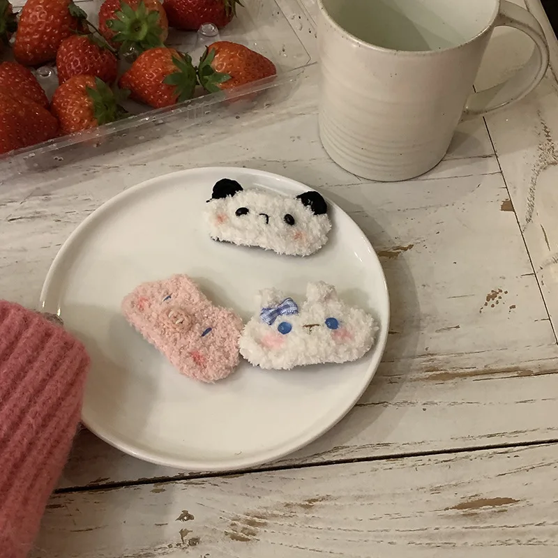 2 шт./компл., милые корейские модные заколки для школьниц, осенне-зимние плюшевые вязаные заколки для волос, милый головной убор с мультяшными животными