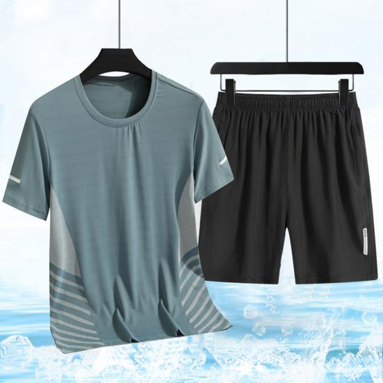 2 шт./компл., мужская летняя спортивная экипировка, футболка с короткими рукавами и принтом, эластичная талия, широкие шорты, комплект, быстросохнущая баскетбольная экипировка из ледяного шелка