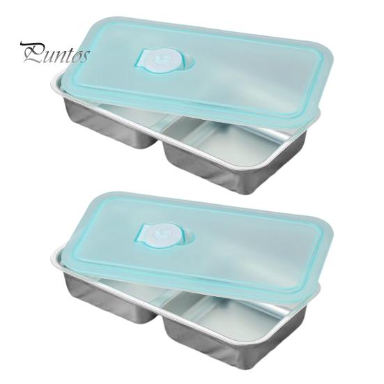 2 шт. контейнеры для закусок из нержавеющей стали с двумя отделениями для приправ с крышками контейнер для ланча Bento Box для офиса, школы, нержавеющая коробка для приготовления еды 2pcs 2Grids