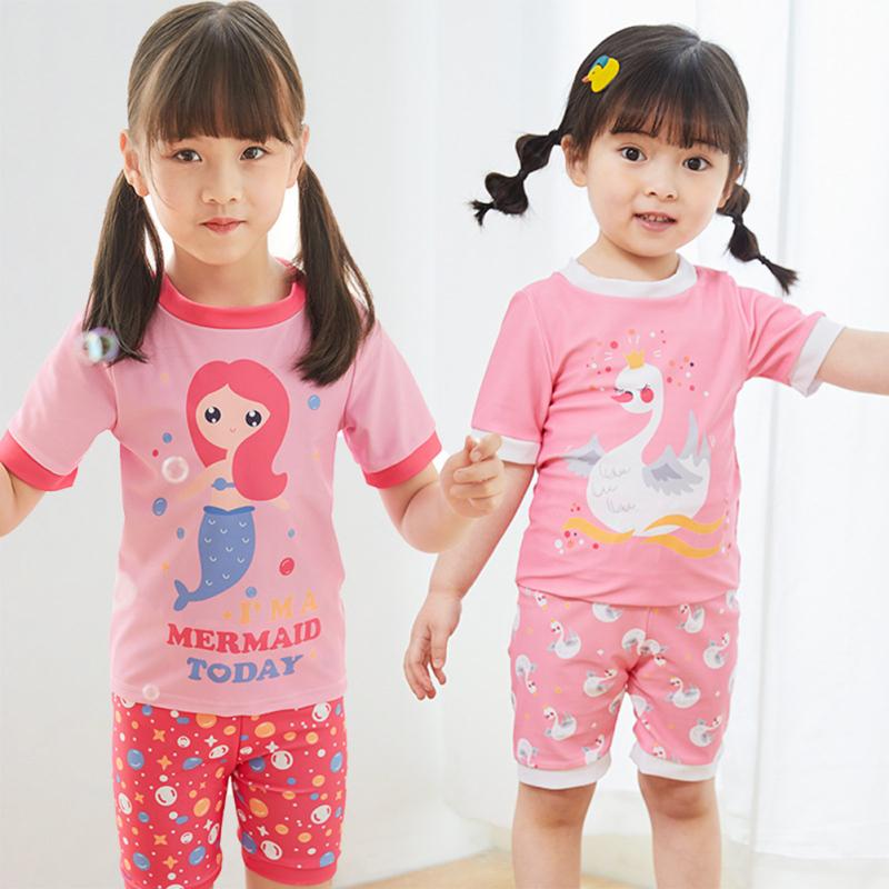 2 шт., купальник с героями мультфильмов для девочек, топы с короткими рукавами, плавки, раздельный купальный костюм для детей 2–7 лет