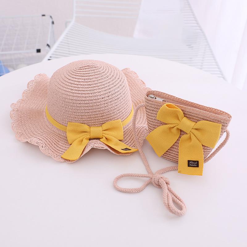 2 шт. летние пляжные шляпы для девочек с полями в виде листьев лотоса, симпатичные, прищуривающиеся, с бантом, защита от солнца для улицы, детская соломенная кепка, детская пляжная шляпа 52-54cm