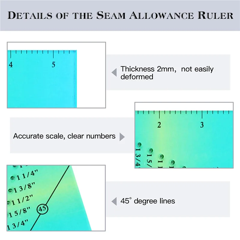 2 шт. линейка для направляющих швов с 4 магнитными направляющими для швов, линейка для шитья прямых швов от 1/8 до 2 дюймов, прочная линейка для посева швов