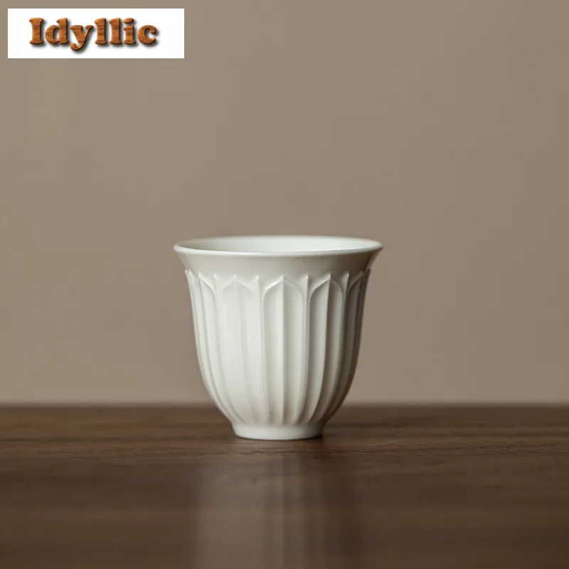 2 шт./лот, рельефная чайная чашка с лепестками лотоса, древняя чайная чаша, набор чашек, персональная чашка для дегустации чая, чашки Chazhan Master, кафе, 35 мл