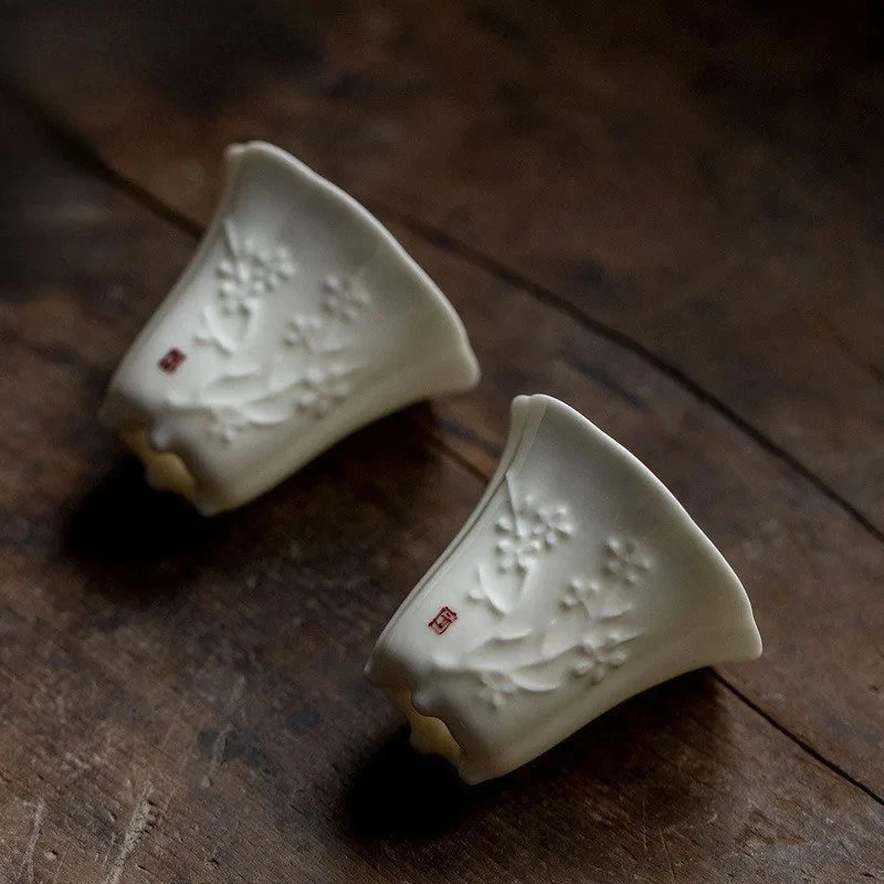 2 шт./лот, рельефная чашка из баранины, жира, нефрита, чайная чашка с цветком сливы, чайная чаша в стиле дзен, одиночные чашки, персональная чашка для дегустации чая, чашки Jianzhan Master, 80 мл