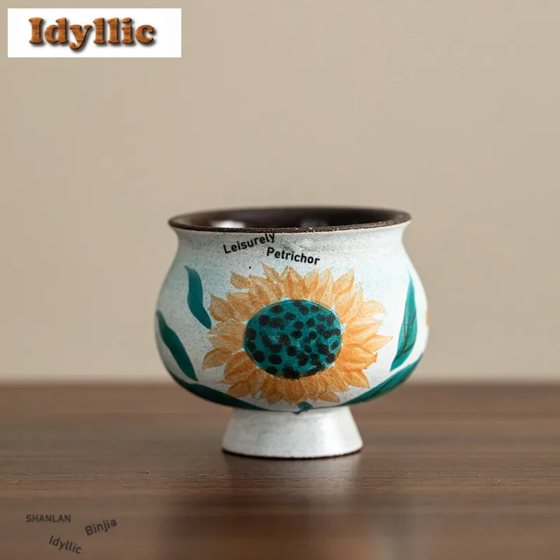 2 шт./лот, ручная роспись подсолнечника, чашка на высоких ножках, элегантная чайная чаша, набор чайных чашек, персональная чашка для дегустации чая, чашки Jianzhan Master, 70 мл