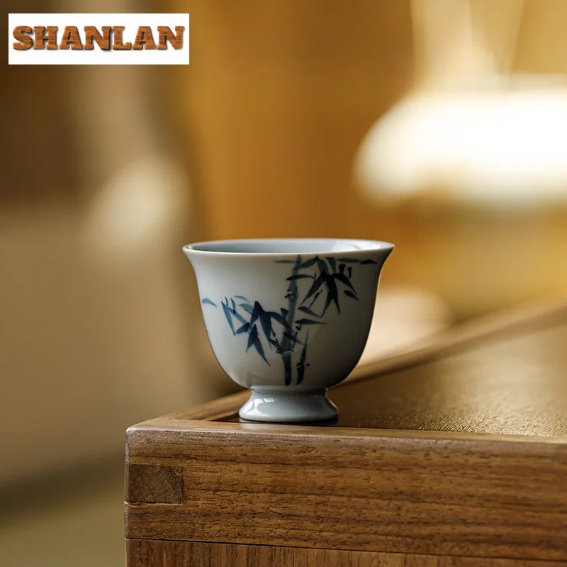 2 шт./лот, ручная роспись, синяя бамбуковая чайная чашка, набор чашек для чая в стиле дзен, чашка с ароматом для дегустации чая, чашки Chazhan Master, чайная церемония, 50 мл