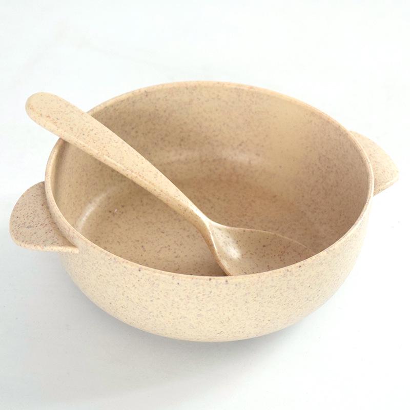2 шт./набор Миска из пшеничной соломы с ложкой Легкая многоразовая миска для десерта и салата Прочная миска для завтрака и супа Детские миски бежевый