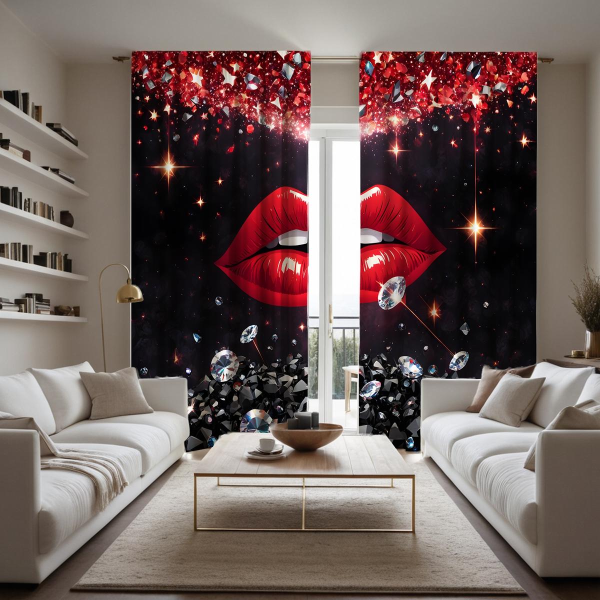 2 шт. набор высокая свежая личность алмаз сексуальные красные губы декоративная занавеска черный галстук цифровая печать занавеска украшение дома st W52H63inchW132H160cm