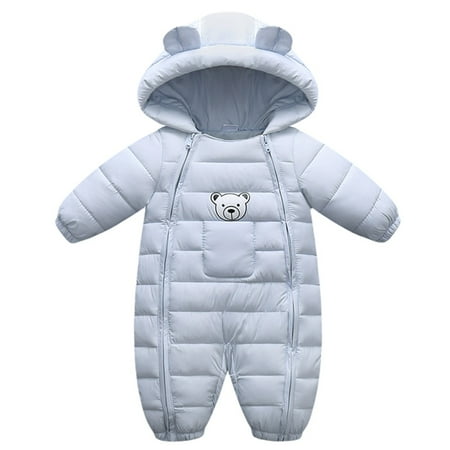 SYNPOS Baby Boy Girl Bear Hooded Puffer Snowsuit Newborn Winter Jumpsuit Jacket
