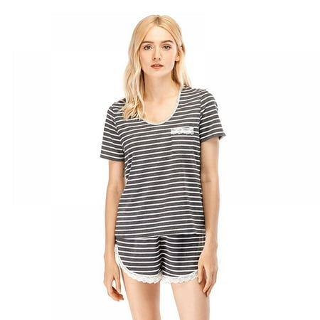 Women s Round Neck Casual Homewear Comfortable Thin Top + Pants Sleepwear Sets